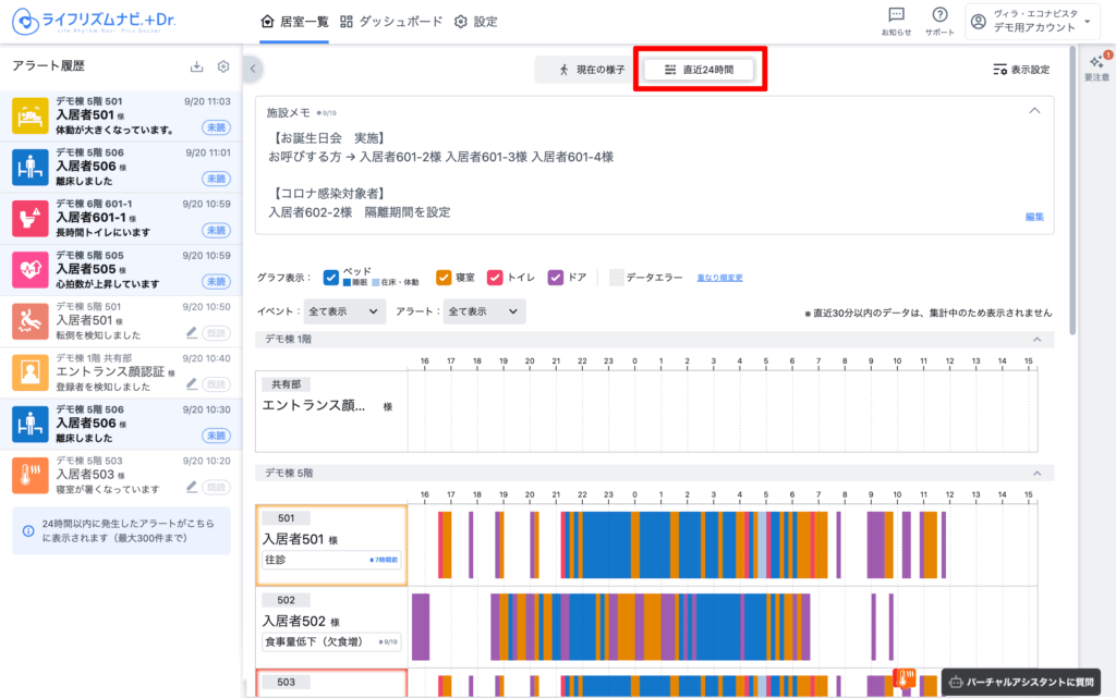 居室一覧 [ 直近24時間 ]