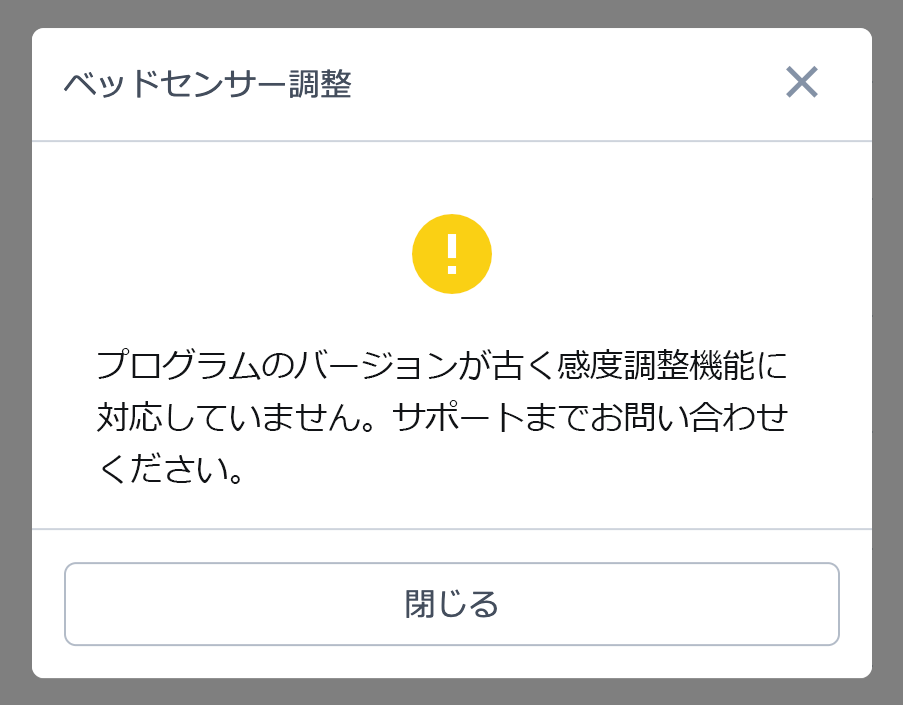 ベッドセンサー内のプログラムのバージョンが最新ではないため調整機能が使用できない場合に表示されます。