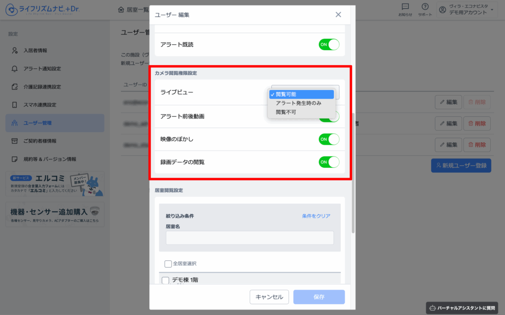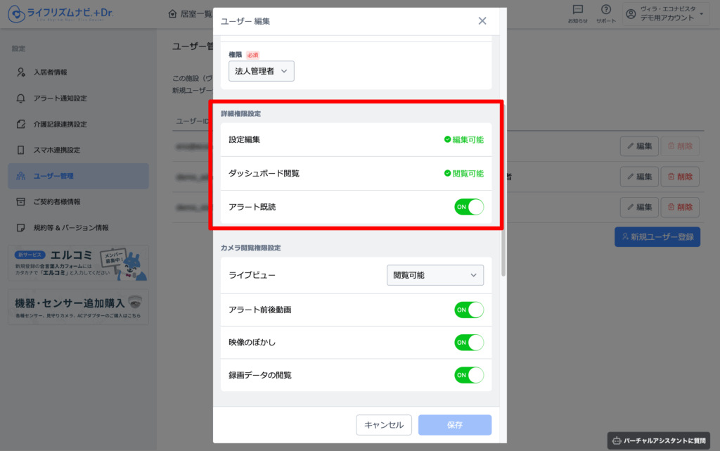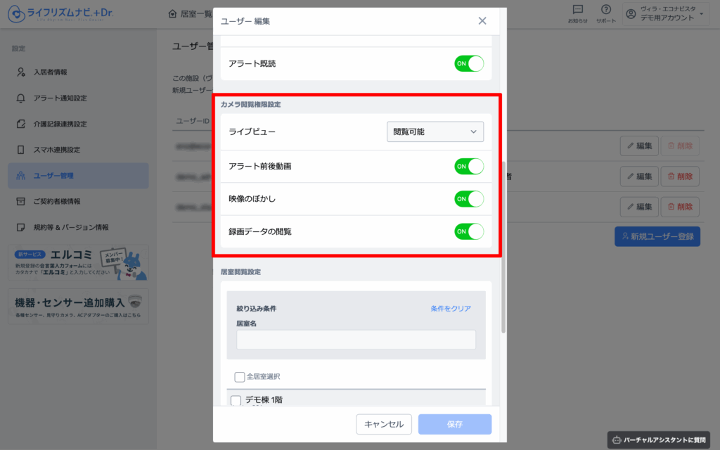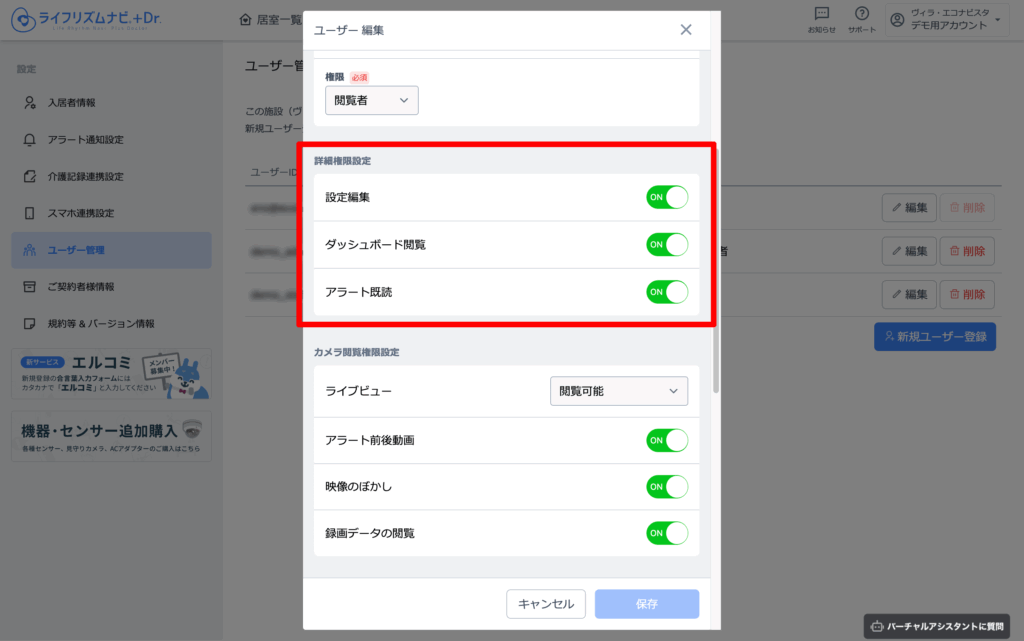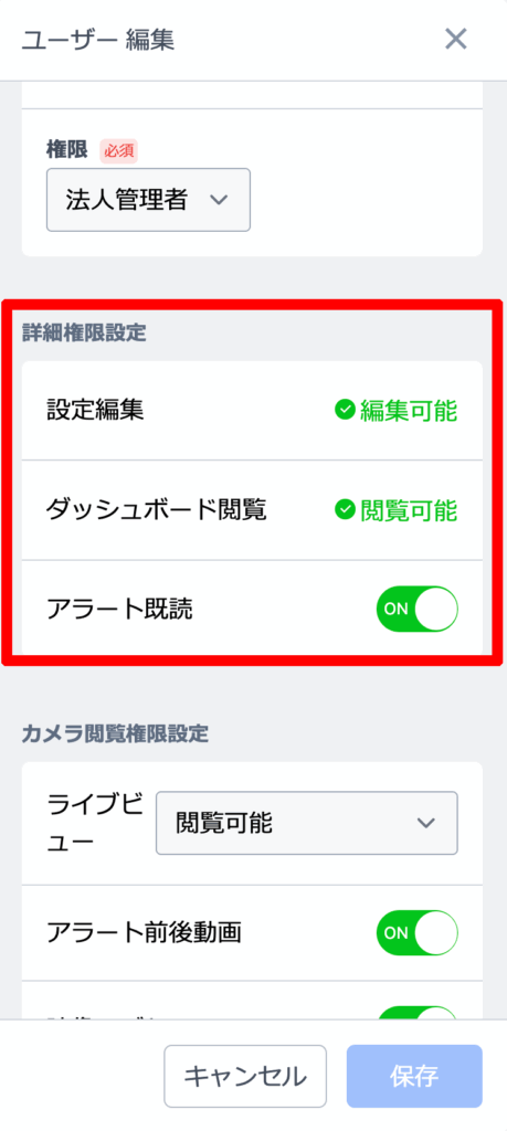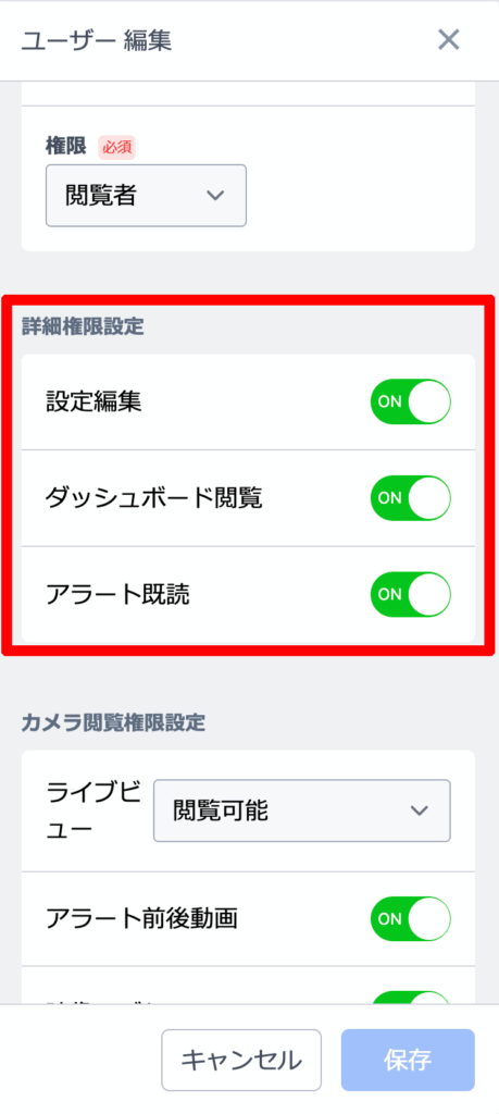 設定編集をONにした場合は、「閲覧者」ユーザーも各種設定の変更が可能になります。