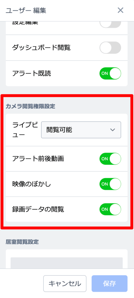 ユーザーごとにカメラ映像の閲覧制限を設定できます。