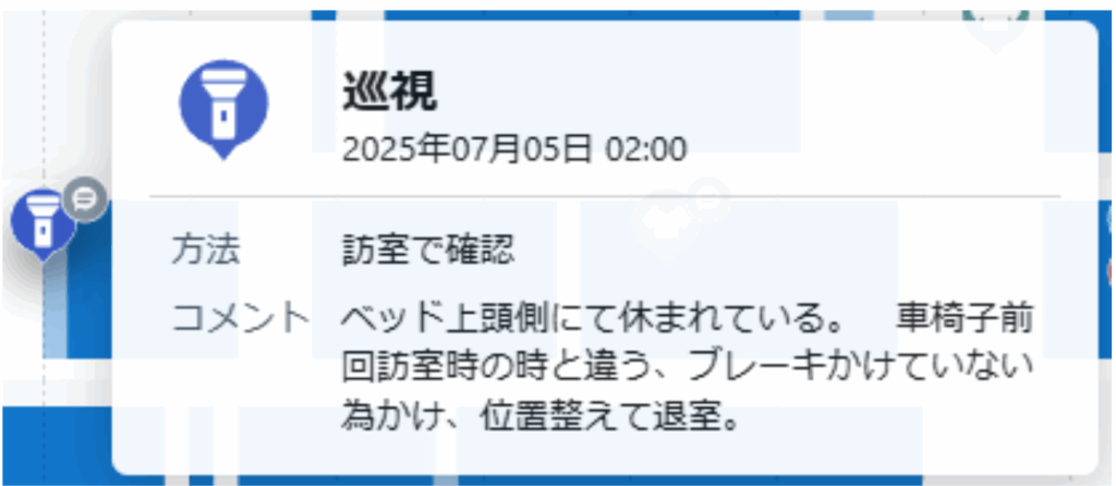ライフリズムナビのイベント記録を活用し、ご入居者の普段の様子や行動を記録した。