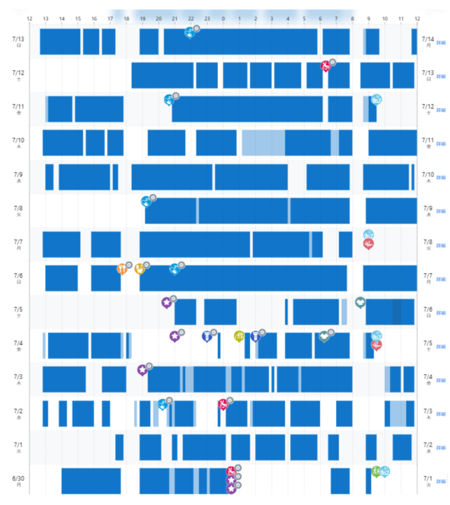 普段の睡眠リズムを知ることで、変化が起きたときに気付くことができます。